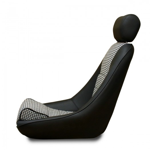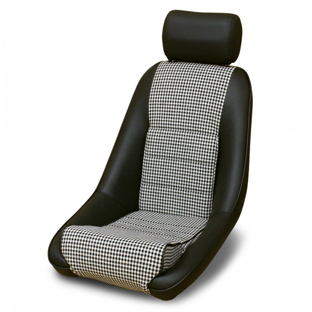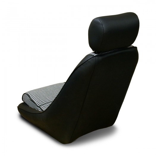 ポルシェ356の後継モデルとして発表された「901 シャシー#57」に採用されたペピータパターンシートをモチーフに、センター部に千鳥格子柄ファブリックを、ヘッドレスト・サイド・背面にブラックレザー(合皮)を用いました。