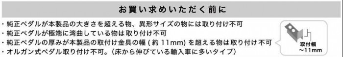 ※純正ペダルの形状や寸法によって取り付けできない場合があります。画像を参照下さい。