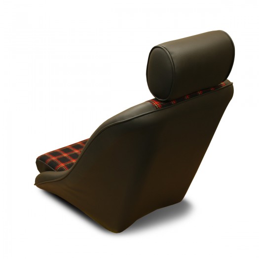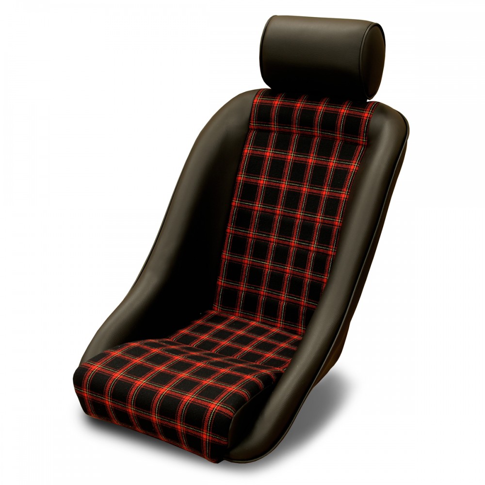 ポルシェ356の後継モデルとして発表された「901 シャシー#57」に採用されたペピータパターンシートをモチーフにした「千鳥格子・ペピータ柄」に加え、'74~のビッグバンパー期の内装に見られた「タータンチェック柄」をラインナップ。千鳥格子柄と同様、ヘッドレスト・サイド・背面のブラックレザーは合皮です。