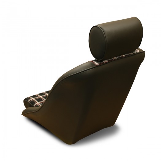 ポルシェ356の後継モデルとして発表された「901 シャシー#57」に採用されたペピータパターンシートをモチーフにした「千鳥格子・ペピータ柄」に加え、'74~のビッグバンパー期の内装に見られた「タータンチェック柄」をラインナップ。千鳥格子柄と同様、ヘッドレスト・サイド・背面のブラックレザーは合皮です。
