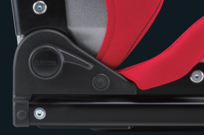 新設計の高剛性スチールフレームに加え、STRADIA3のモノコックシェルデザインをベースに「ディープショルダーサポート&ハイサイドサポート」をコンセプトに、新たに設計・開発されたGIAS3のモノコックシェルは、剛性と強度が従来モデルに比べて飛躍的に向上(フレームの引っ張り強度は200%、全体強度は40%、バックレスト強度は15%アップ)